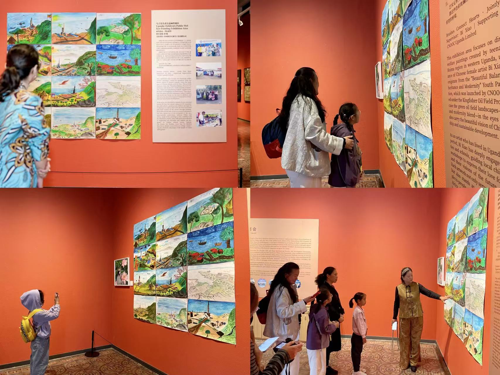在“丝路共绘·中乌同辉”中国(青岛)乌干达文化艺术展展览中,特别设置的乌干达青少年公益绘画展区,吸引了众多观众驻足欣赏。这些充满童真与希望的作品,来自乌干达西部霍伊马地区17所学校的青少年,他们在“传承与现代的美丽平衡”绘画比赛中,用画笔描绘出心中绿色油田与美好家园的融合图景。