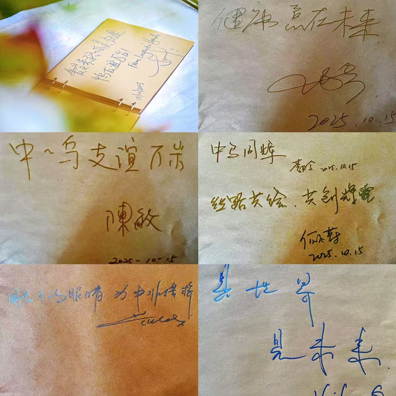 展览现场,观众驻足画前,眼中闪烁着好奇与共鸣。留言簿上,观众纷纷写下祝福:“愿这些色彩连接起中乌两国人民的心”、“艺术无界,爱心无疆”。真挚的话语,正是中非友谊在民间层面的温暖回响。